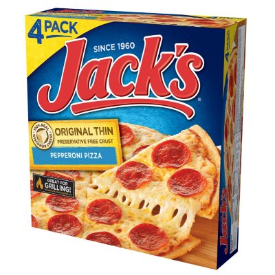 Thin Crust Pepperoni Frozen Pizza | Official JACK'S® Pepperoni Pizza will never fade away. You can't do much better than crispy crust, 100% real Wisconsin cheese and scrumptious pepperoni. MADE WITH MADE WITH REAL CHEESE PRESERVATIVE FREE CRUST ALSO GREAT FOR GRILLING! NUTRITION COOK IT OR GRILL IT Conventional Oven Instructions Step 1 Preheat oven to 425°F. Remove pizza from overwrap and cardboard.