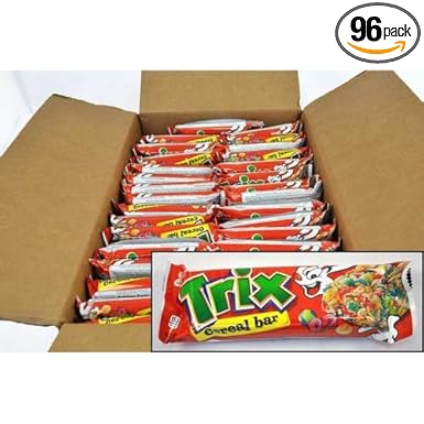 Trix Cereal Bar, 1.42 Oz (Pack of 96) - amazon.com This item: Trix Cereal Bar, 1.42 Oz (Pack of 96) $60.95 ($0.45/Ounce) Only 13 left in stock - order soon. Ships from and sold by FoodsForFoodies. FREE Shipping. Cocoa Puffs Cereal Bar, 1.42 Oz (Pack of 96) $53.48 ($0.39/Ounce) Only 4 left in stock - order soon. Ships from and sold by Royalwise inc.
