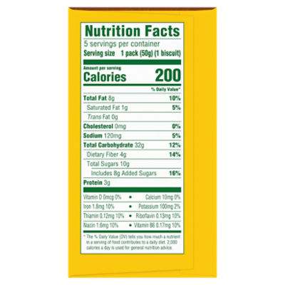 belVita Breakfast Biscuits, Toasted Coconut: Calories, Nutrition ... Nutrition Serving Size: 1 pack (50g) Amount per Serving My Daily Value Calories 230 Kcal 14% Total Fat 9 g 14% Saturated Fat 1.5 g 9% Trans Fat 0 g 0% Cholesterol 0 mg 0% Sodium 125 mg 5% Potassium 90 mg 2% Total Carbohydrate 35 g 15% Dietary Fiber 3 g 12% Sugars 11 g 15% Added Sugars 11 g 46% Protein 4 g 8% Calcium 0 mg 0% Iron 1.8 mg 10%