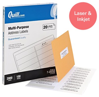 Quill Brand® Laser/Inkjet Address Labels, 1" x 4", White, 2,000 Labels (Compare to Avery 5161, 5261 & 5961)
