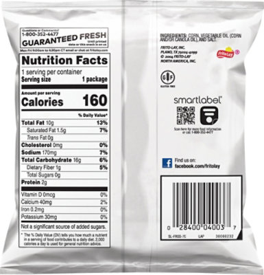 Fritos The Original Corn Chips - Shop Fritos The Original Corn Chips ... Product description, Guaranteed fresh. 0 grams trans fat. No preservatives. Gluten free. Made with all natural ingredients. Ingredients Whole Corn, Corn Oil and Salt. Safety warning, Keep in, Actual product packaging and materials may contain more or different information than that shown on our website.