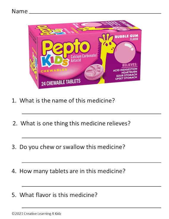Reading Medicine Labels Teaching Resources | TPT - TeachersPayTeachers I have provided 3 levels of these worksheets for your special education classroom along with a Black & White version to save on ink.These Medicine Label Worksheets include 3 levels:Cut & PasteMultiple ChoiceWrite in the AnswerEach level has 20 pages with 5 questions to complete on each page.More Life Skills ActivitiesEmail me with any questions: …