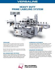 TECHLINE® - Quadrel Labeling Systems - PDF Catalogs | Technical ... TECHLINE® Labeling System TECHLINE® Wraparound Labeling System The TechLine is a high performance, yet economically- priced labeling system for applying labels to cylindrical products of various diameters at up to 200 ppm. ... All Quadrel Labeling Systems catalogs and technical brochures. ECONOLINE® E100. 2 Pages. SL200. 2 Pages. SL300. 2 ... ModuLine Labeling System - Quadrel Labeling Systems - PDF Catalogs ... ML60 - Milk Container Labeling System 1 Pages Front/Back and Top 1 Pages 3-Panel Zero Downtime Labeling System 1 Pages Pharmaceutical Wrap Labeler 1 Pages Q41 Air Blow Applicator 2 Pages Versatile Merge Label Applicator 2 Pages High-Performance Label Applicator 2 Pages Compact, Modular Label Applicator 2 Pages Quadrel Labeling Systems - Mentor, OH | about.me Visit my website. Address: 7670 Jenther Dr. Mentor, OH 44060 USA. Phone: (440) 602-4700. Email: labeling@quadrel.com. Description: "Quadrel Labeling Systems has been a leading manufacturer of pressure sensitive and shrink sleeve application equipment for 30 years. Quadrel's equipment ranges from simple, economically priced systems for smaller ...